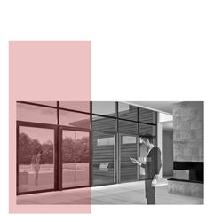![]() West elevation | ![]() Living room with double-height curtain wall facing terrace and deck | ![]() View from East: the building sits against the slightly sloped landscape |
